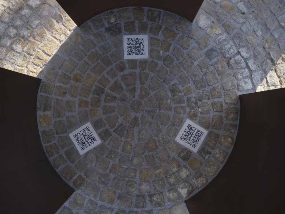 Klangliche Fragmente der Sinti- und Roma-Kultur können aus der Mitte, aus der Bodenfläche zwischen den Bronzesegmenten, über Audio-QR-Codes mit dem eigenen Smartphone abgerufen und an den Erinnerungsort übertragen werden. Zu mehreren entsteht ein atmosphärischer Klangraum aus gestrichenen Akkordklängen, die sich fließend ineinander bewegen, kombinieren und verdichten.