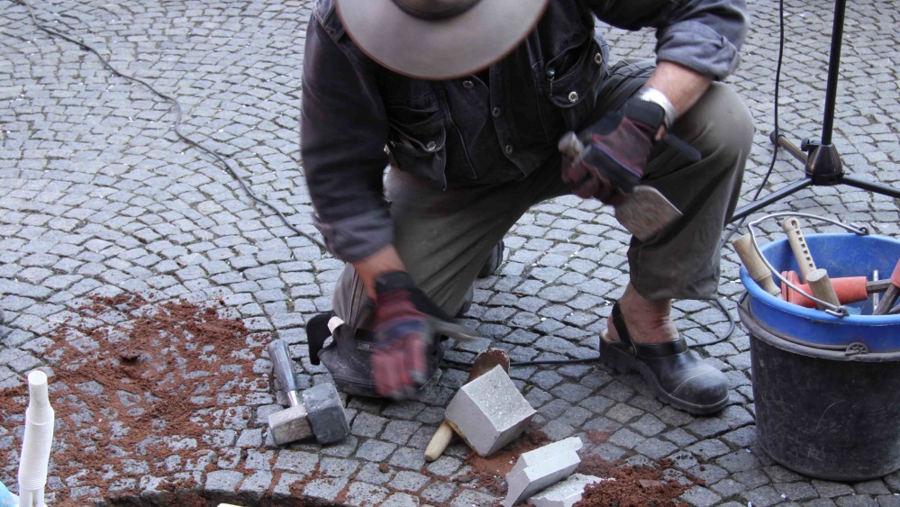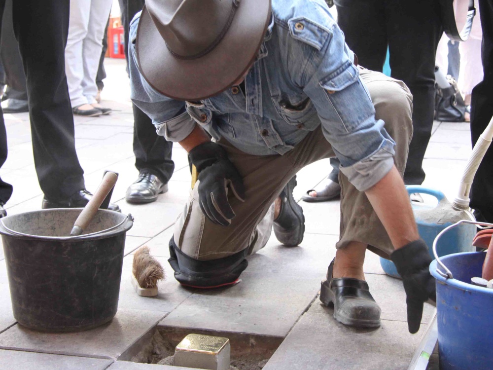 Von den kleinen Tafeln geht also keine wirkliche Stolpergefahr aus. Wie der Künstler Gunter Demnig ausführt, soll man nur "stolpern mit dem Kopf und dem Herzen". Der Künstler legt Wert darauf, die Steine selbst zu verlegen.