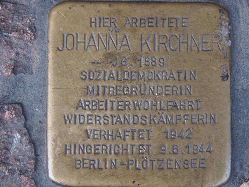 Die Sozialdemokratin war Mitbegründerin der Arbeiterwohlfahrt und Widerstandskämpferin gegen das NS-Regime. Nachdem die SA das Frankfurter Gewerkschaftshaus besetzt hatte, emigrierte Kirchner am 2. Mai 1933 nach Saarbrücken. In der Bahnhofstraße 80 fand sie in einem Treffpunkt für Emigranten Arbeit.