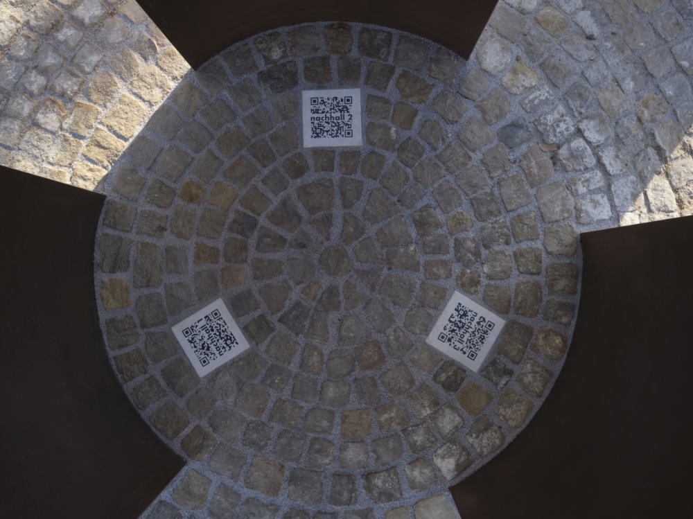 Sound fragments of Sinti and Roma culture can be accessec from the centre, from the floor area between the bronze segments, using audio QR codes on a smartphone and transmitted to the memorial site. An atmospheric sound space of bowed chordal sounds is created, which flow, combine and condense into one another.