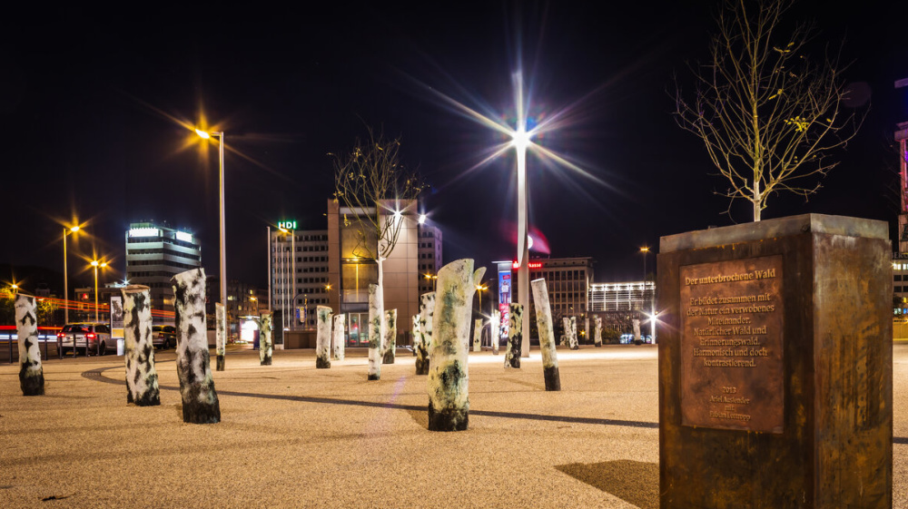 “The interrupted forest” is a memorial to the Jews from the Saar Region murdered under the Nazi regime. It is based on a concept by Darmstadt sculptor Prof. Ariel Auslender. His was the winning design in an artist’s competition organised by the Saarland capital in 2012.