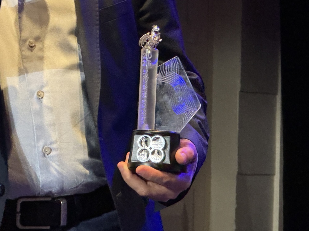 La partie cylindrique du trophée est réalisée en résine transparente, dans laquelle un texte a été gravé, apportant à la fois légèreté et modernité à la pièce. Le socle reprend quant à lui le design de Quattropole, tandis qu’une plaque en plexiglas ornée de lignes évoquant des ondes musicales, inspirées de l’affiche de l’événement, vient compléter la composition.
