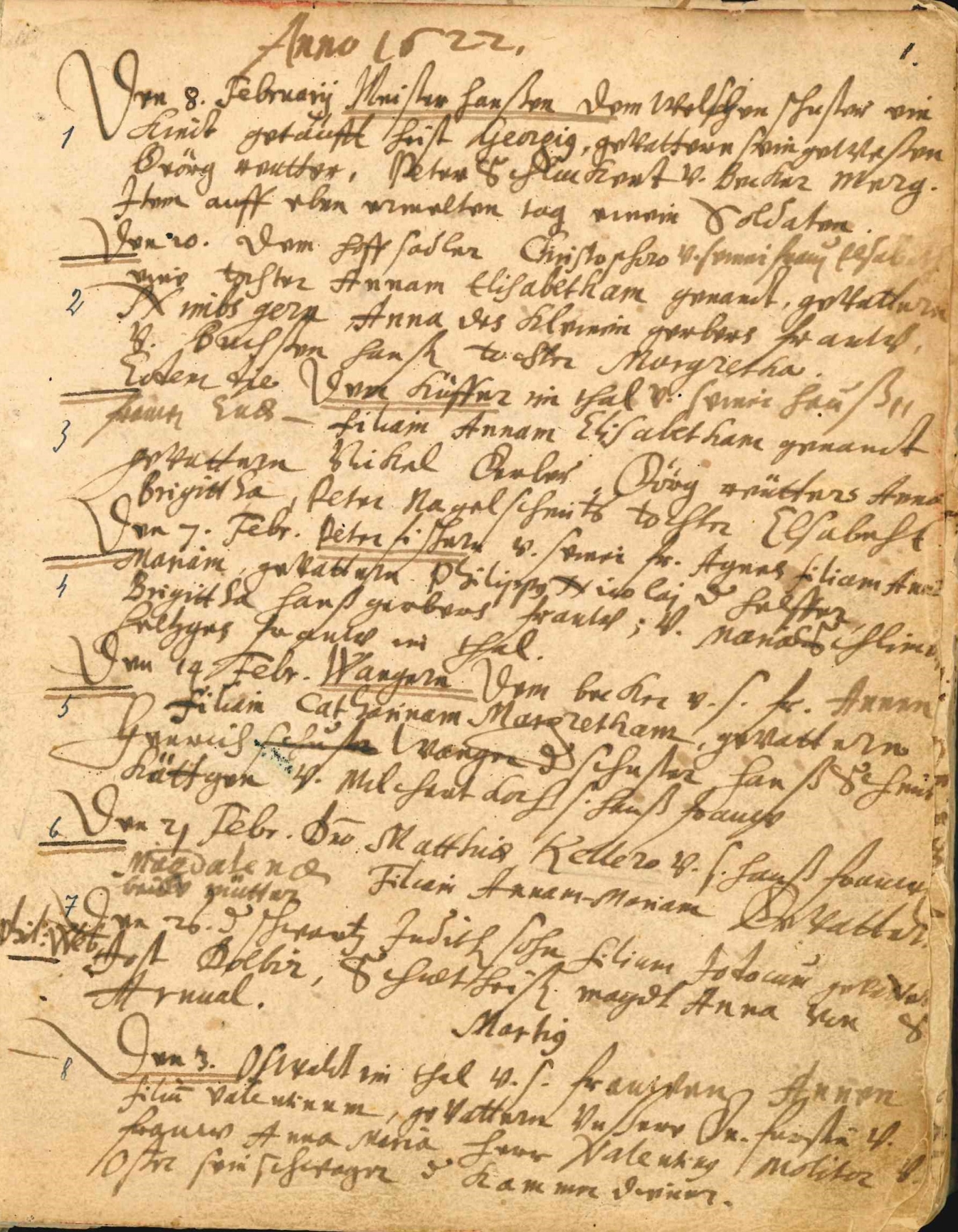Alphabetische Namensverzeichnisse finden Sie in unserer Online-Recherche unter dem Punkt Kirchenbücher. Nicht zu jeder Kirchengemeinde sind alphabetische Indices vorhanden.