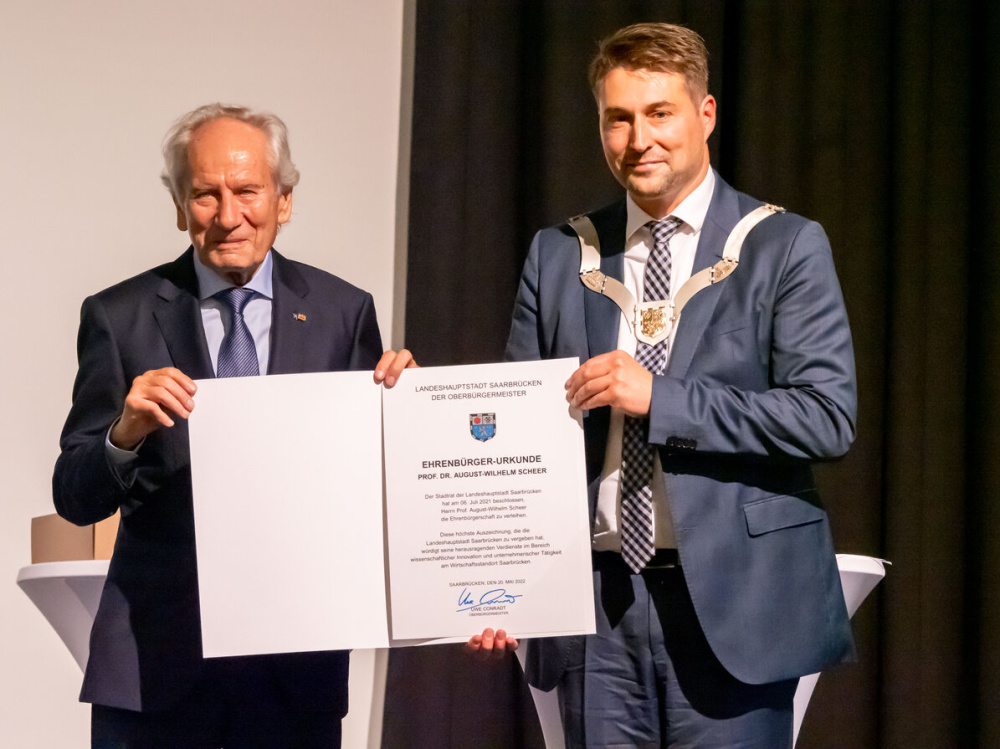 Der Stadtrat der Landeshauptstadt Saarbrücken hatte in seiner Sitzung am 6. Juli 2021 einstimmig beschlossen, Professor August-Wilhelm Scheer die Ehrenbürgerwürde zu verleihen.