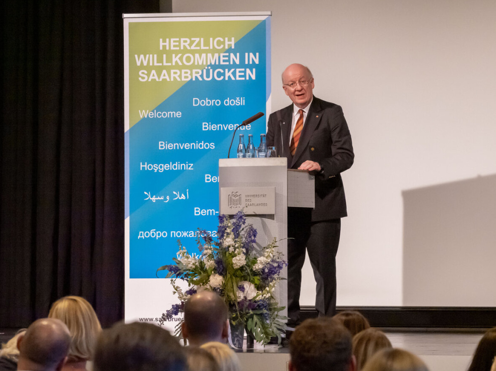 Professor Wolfgang Wahlster, Gründungsdirektor des Deutschen Forschungszentrums für Künstliche Intelligenz und ebenfalls Ehrenbürger der Landeshauptstadt Saarbrücken, hielt bei der Verleihung in der Universitäts-Aula ein Grußwort. „Als weltweit anerkannter Wirtschaftsinformatiker und gleichzeitig sehr erfolgreicher IT-Unternehmer ist Professor Scheer für viele junge IT-Talente ein strahlendes Vorbild, das sehr gesuchte Fachexperten auch aus dem Ausland nach Saarbrücken führt und so einen wesentlichen Beitrag zur Zukunftssicherung der Landeshauptstadt leistet.“