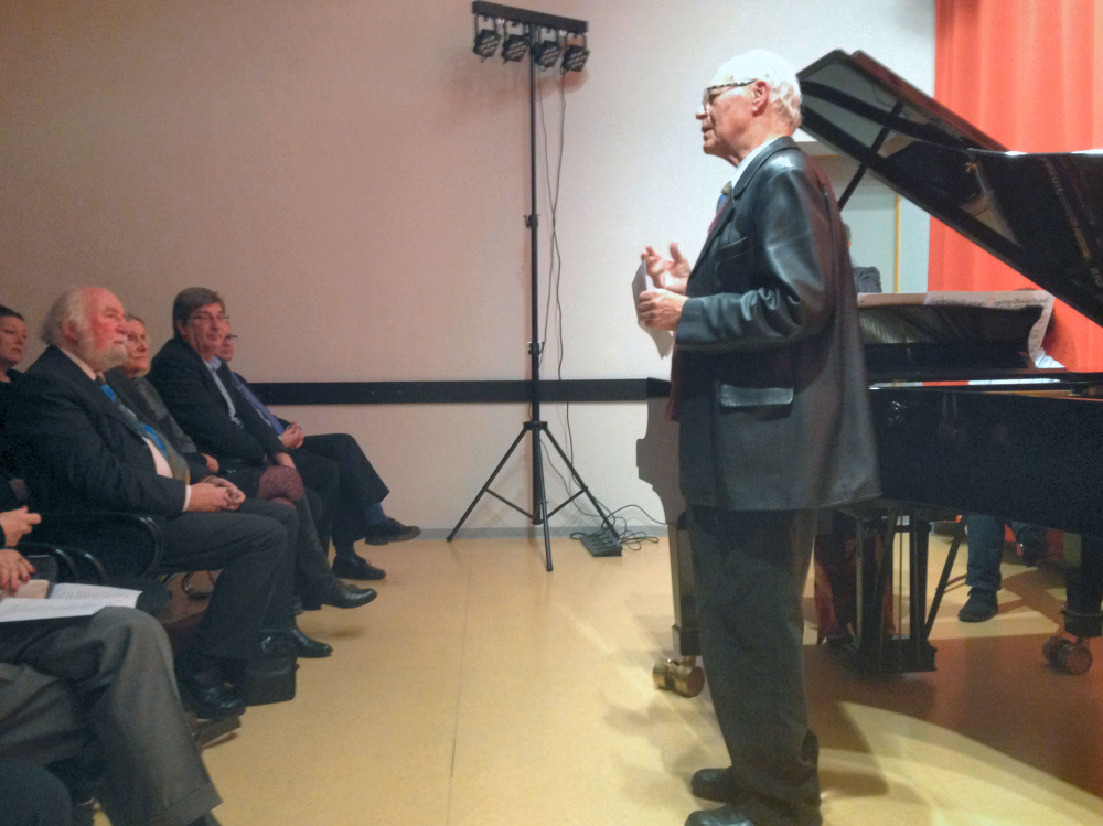 Die Feier wurde musikalisch umrahmt von Kolja Lessing (Würzburg) und Frank Reinecke (Berlin), die Kompositionen von Tzvi Avni für Violine und Viola präsentierten.