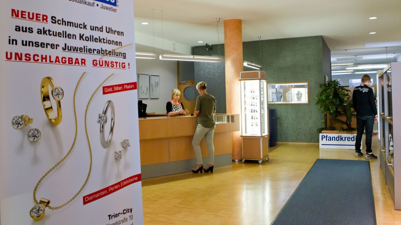 Das Saarbrücker Pfandleihhaus gewährt seit 65 Jahren kurzfristig Kredit mit Filialen in Saarbrücken und Trier. Auch der Ankauf und Verkauf von Gold, Schmuck und Luxusuhren, eine Juwelierabteilung mit neuem und gebrauchtem Schmuck, sowie Goldschmiede und Uhrenservice gehören zu unserem Angebot. Unser geschultes Personal (Goldschmiedemeister, Gemmologen und Diamantgutachter) berät Sie gerne rund um Schmuck und Uhren, egal ob sie einen Pfandkredit benötigen, verkaufen oder günstig kaufen möchten.