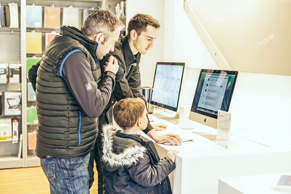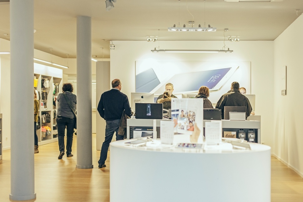 Ob eingefleischter Apple-Liebhaber, professioneller Nutzer oder Neueinsteiger - das Team berät, hilft bei Kaufentscheidungen, ist bei Reparaturen, Wünschen und Anliegen für Sie da.