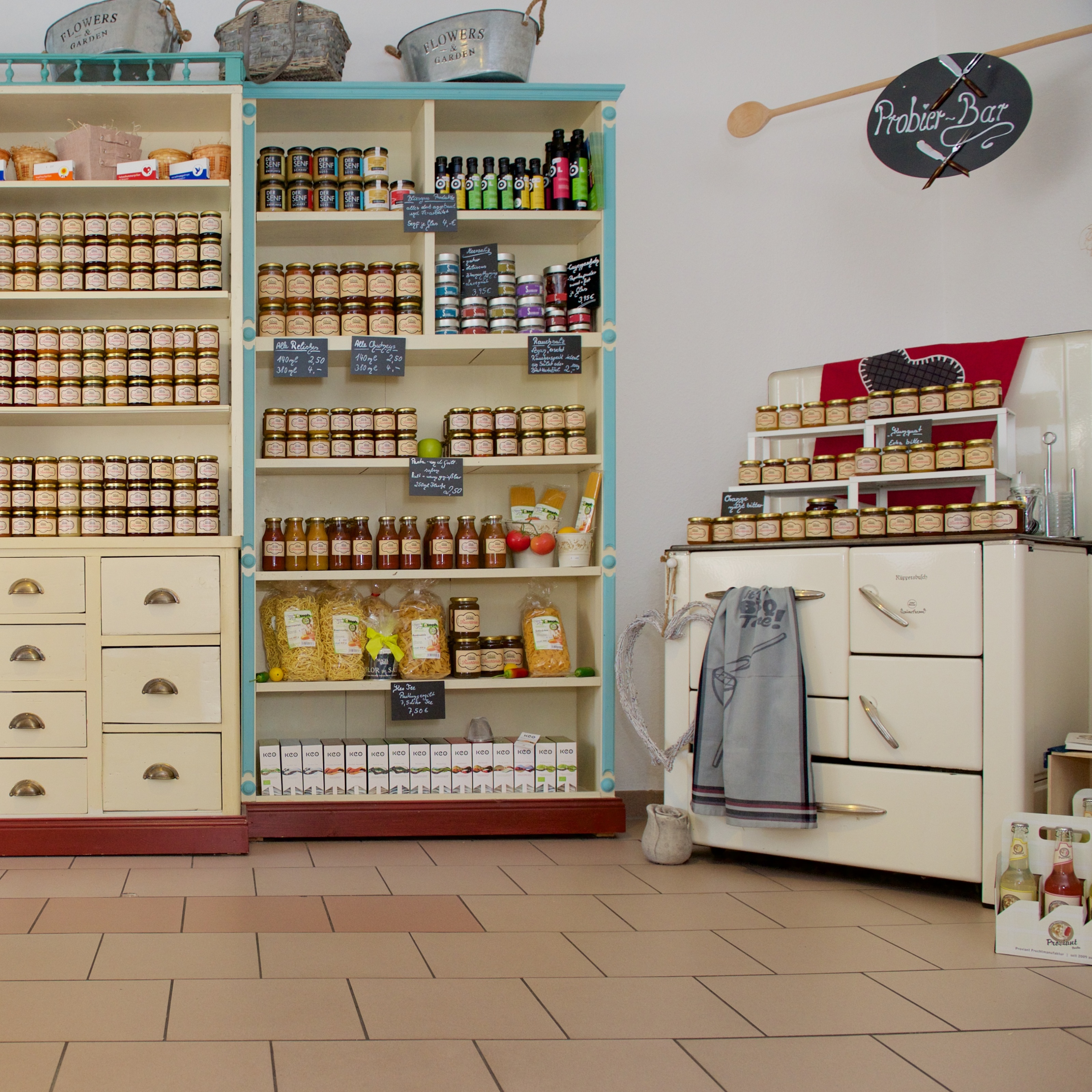 Alles ist in reiner Handarbeit aus erlesenen Zutaten hergestellt und keine Großproduktion. Lassen Sie sich einfach mal verführen. Direkt an die Manufaktur schließt sich ein liebevoller kleiner Kaufmannsladen mit einer alten Vintage Einrichtung an. So können alle Köstlichkeiten direkt vor Ort probiert und gekauft werden.