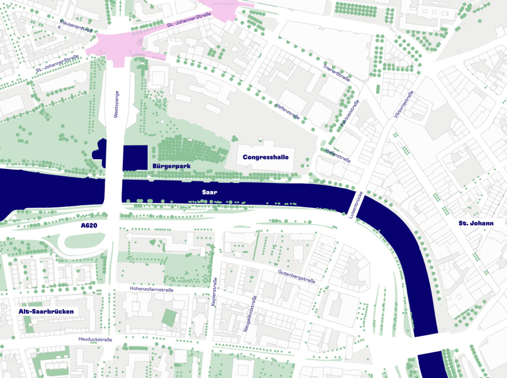 - die neugestalteten Bereiche der St. Johanner Straße und der Trierer Straße,